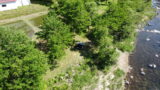 星空サイトにはすでにお一方設営に入られていたので近づかずに上空から全体を一枚撮影しました。のんびり空撮を楽しみたいところですが、日差しが強くさっさと設営して日陰を作りたいところです。
