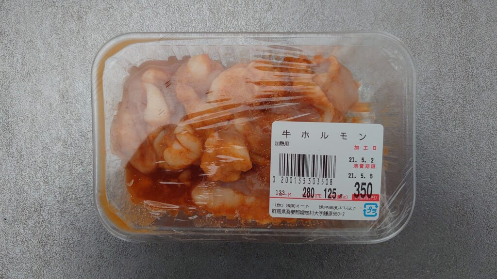 ちょっとずついろいろな肉を食べたいなと思い、牛ハラミ、豚レバー、牛ホルモン、鶏軟骨を100gずつオーダーしました。後は、ビールを買って、温泉入って、プシュッとやるだけです。