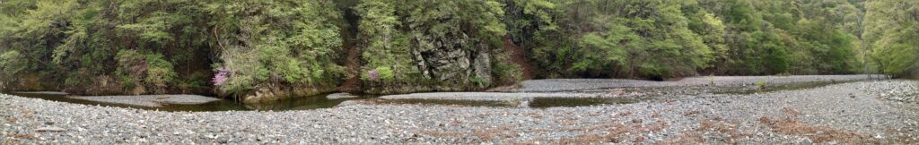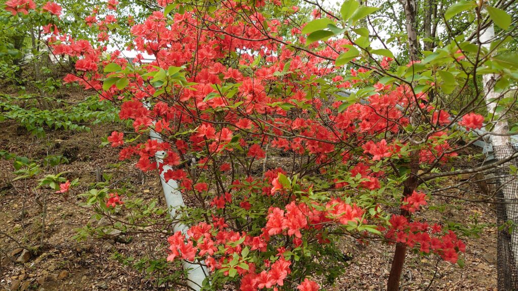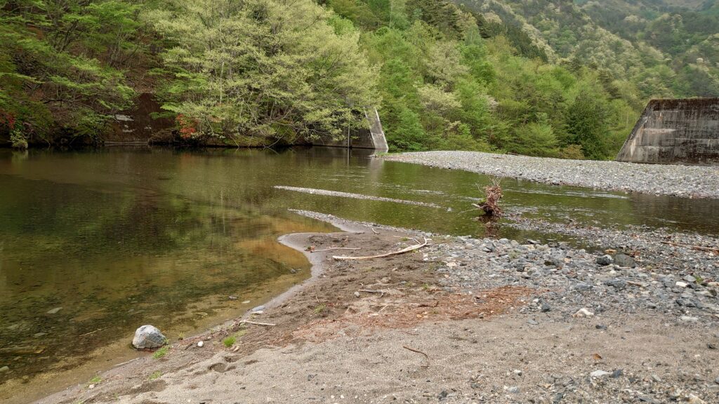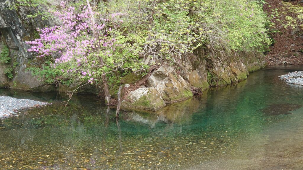 途中ツツジが咲いていました。ちょうど見頃です。かじか荘を越えると、少し先に砂防ダムが見えてきます。その先へ進むと、砂防ダムの上の開けた河原に出ることができます。アップダウンはそれほどありません^^