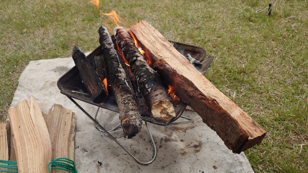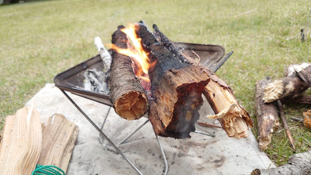 拾ってきた薪もしっかり燃えてくれました。少し水分が含まれているのか、木の端が泡立っています。