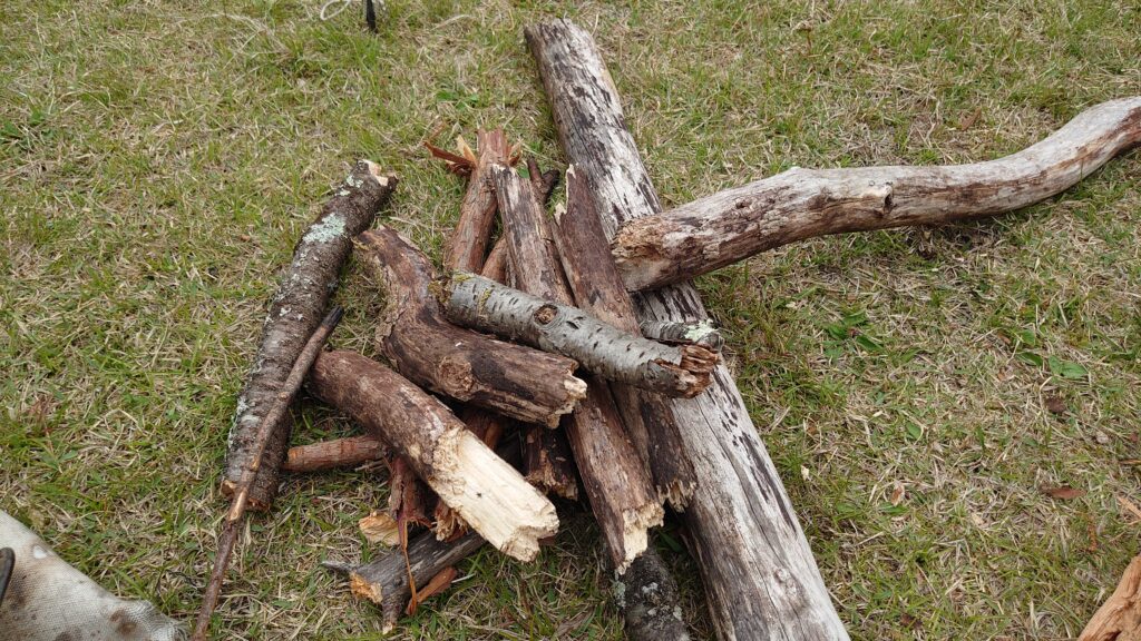 公園内には、薪になりそうな手頃な枝がたくさん落ちています。なにやら、キャンパーが置いていったようなものもありました。