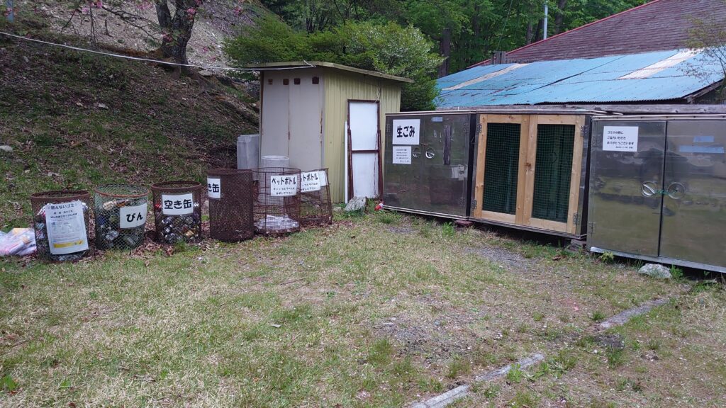 こちらが、ゴミ捨て場です。きちんと分別して捨てるように言われました。特に、生ゴミは水気を切って、匂いが漏れないようにして捨てないと、動物が寄ってきてしまうそうです。