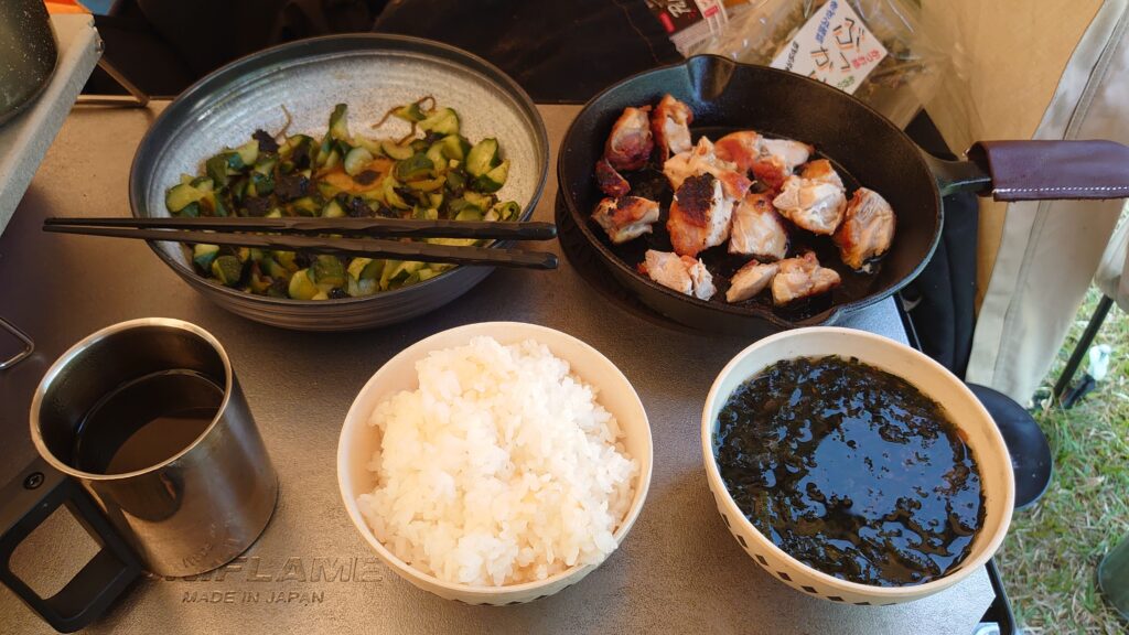 最低気温は8℃でした。寒さは感じませんでしたが、テントが少し結露で濡れていました。それでも、撤収時には乾いていたので、久しぶりに乾燥撤収することができました。今回は、週末にもかかわらず、空いていてのんびりと過ごすことができました。今回は曇りでしたが、テントサイトは空も広く、星空も期待できそうなので、月齢をみて、また、足を運んでみようと思います。