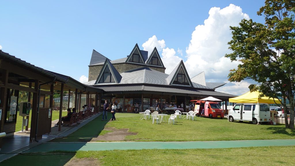 渋川伊香保インターから30分程度でキャンプ場のある高山村に到着です。チェックインの時間までは時間があるので、キャンプ場を通り越して道の駅に寄ることにしました。地元の野菜の直売所のほかにお日帰り温泉施設に足湯、コテージなどもあります。