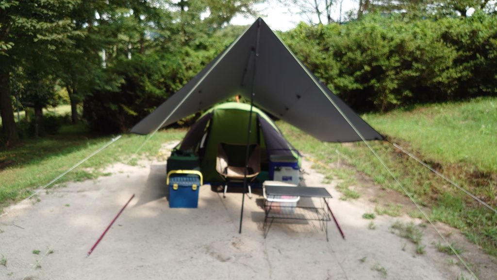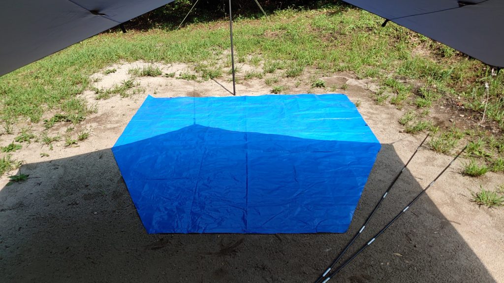 今回はツーリングドーム用に自作したグランドシートを使ってみます。自作といってもブルーシートを切っただけですが^^;